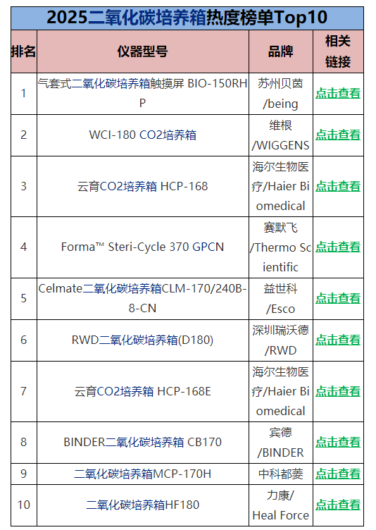 恭喜贝茵二氧化碳培养箱入选仪器信息网2025二氧化碳培养箱热度榜单Top10