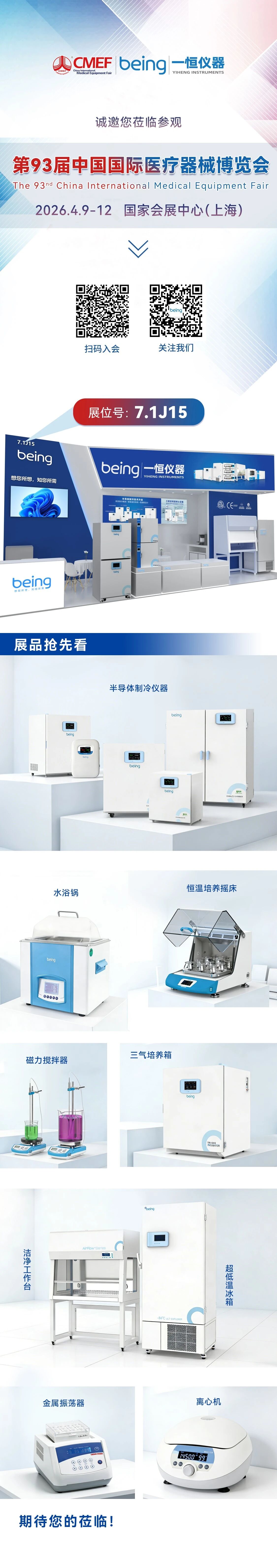 2026-04-07 | 文章来源: | 点击率: 第93届中国国际医疗器械博览会(CMEF)即将于2026年4月9日-12日在国家会展中心(上海)举行。本次展会,我司一展双馆,实验馆将亮相7.1J15展位,现场展出Mini CO2低温培养箱、三气培养箱、半导体制冷CO2培养箱、半导体制冷振荡培养箱、药品稳定性试验箱、智能型洁净工作台、超低温冰箱、恒温培养摇床、水浴锅、磁力搅拌器、金属振荡器、离心机,欢迎各位同仁莅临交流!